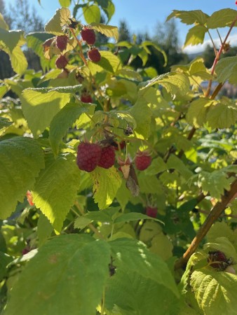 Vi er og så heldig at vi får høste ekstra poter hos Lena, samt plukke deilige bringebær når vi blir fri i barnehagen 🤗