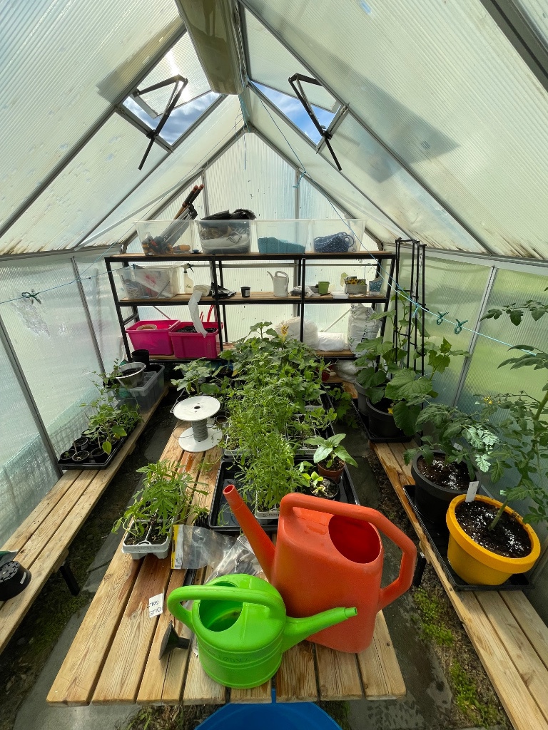 I Kjøkkenhagen og drivhuset er det mange ting som spirer for tiden. Vi har sådd og plantet en hel del å venter nå spent på blandt annet cherrytomater, agurk, gulrøtter, poteter, jordbær, sukkererter, ulike urter, erteblomster og mye mer! Forøvrig har vi også rabarbra, bringebær, solbær og ripsbusker som gir oss mye godt å høste år etter år! 🍓🥒🍅🥕